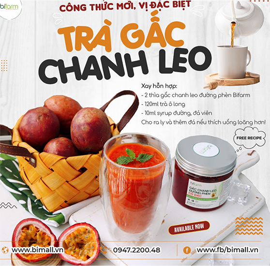 Gấc chanh leo cô đặc có thể pha chế dễ dàng được nhiều đồ uống thơm ngon vừa vị. Sản phẩm từ loại trái cây “đến từ thiên đường” giúp cả gia đình Khoẻ mắt – Đẹp da một cách nhanh chóng chỉ bằng việc bổ sung 1 ly nước gấc thơm ngon mỗi ngày
